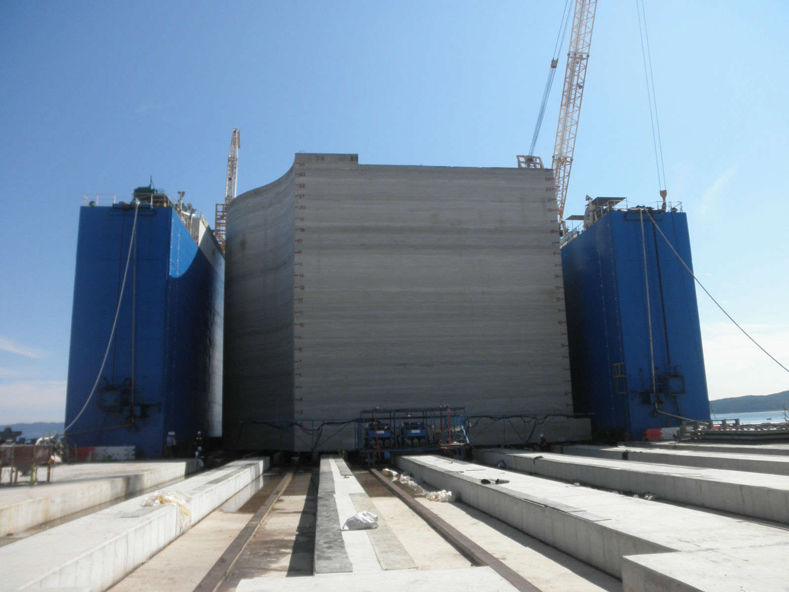 The first caisson type CA with weight of 11.000 ton caisson was successfully transfer by our IP-CCV system to the floating dock at the Pohang Caisson project in Korea.