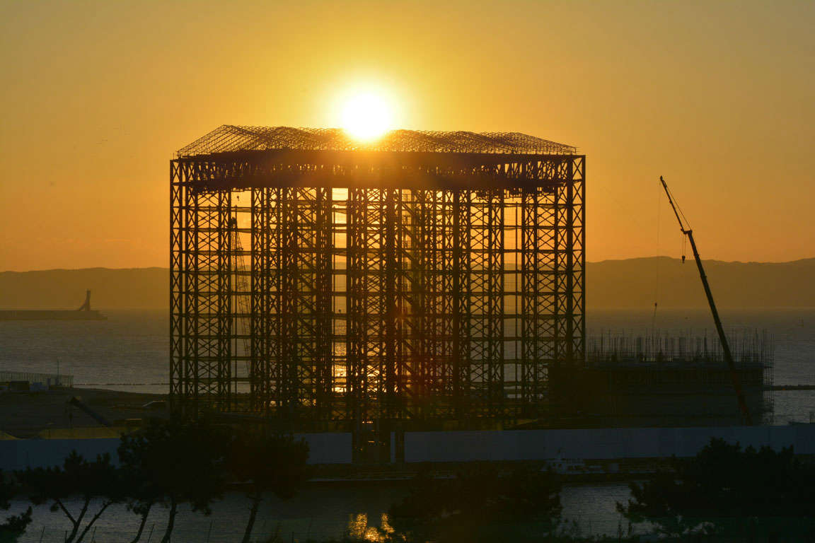 The sun is rising and the construction is progressing rapidly of Bygging-Uddemann’s gantryslipform set-up at the site in Pohang, South Korea.