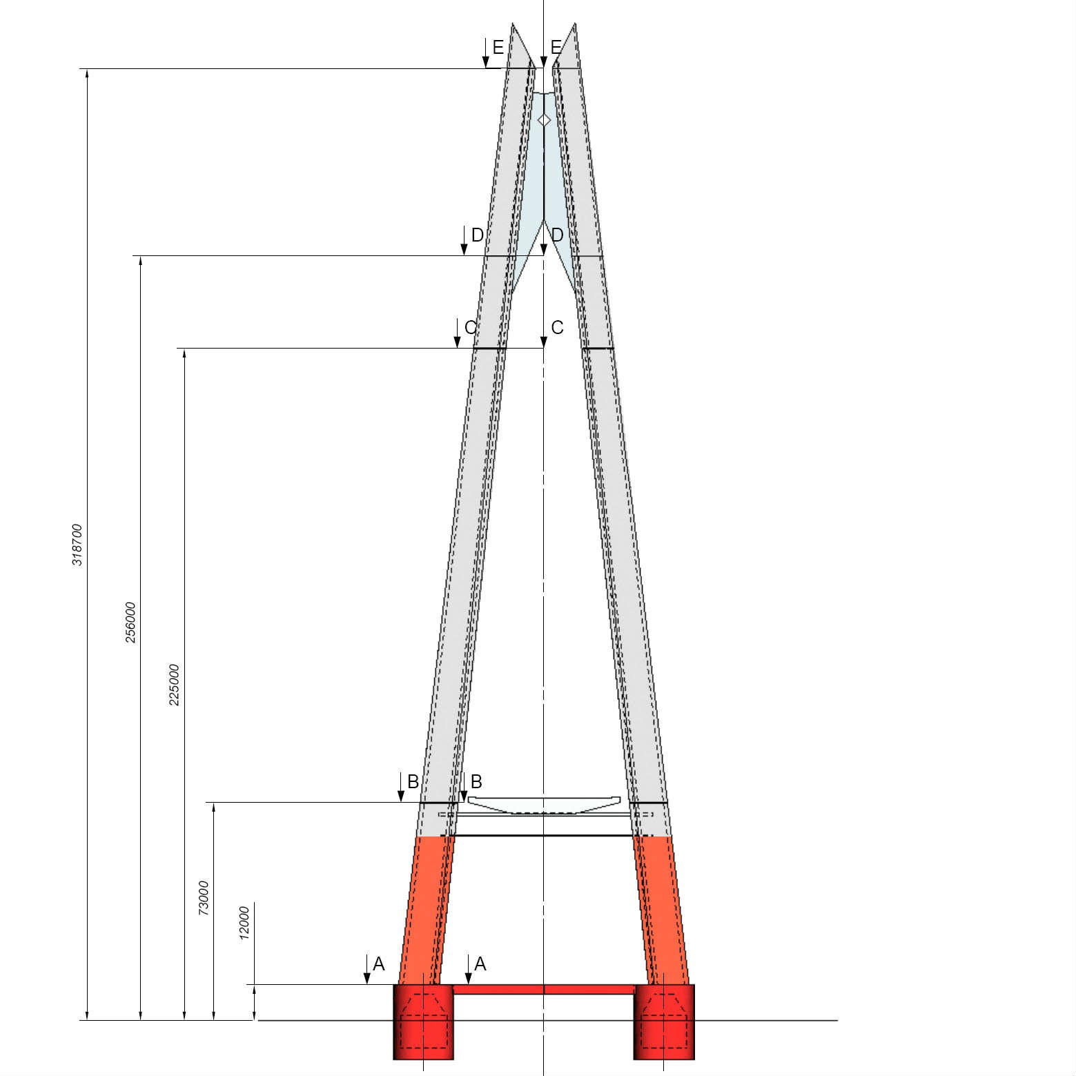 As the towers rise to 129 meters, temporary connection girders will be located at the level of 102 meters. After this phase, fast rise will continue until 200 meters.