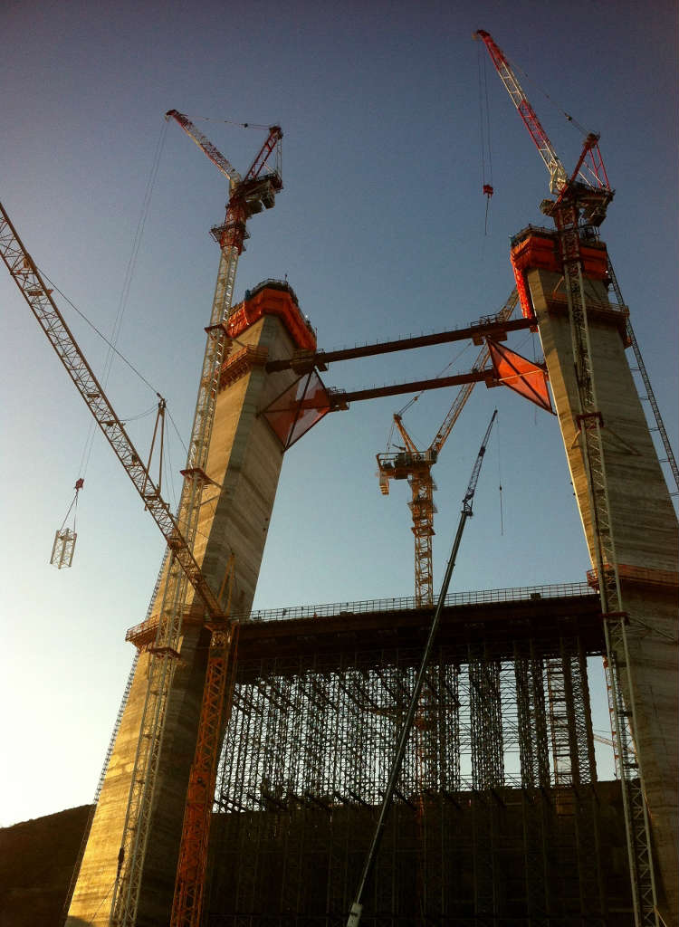 As the towers rise to 129 meters, temporary connection girders will be located at the level of 102 meters. After this phase, fast rise will continue until 200 meters.