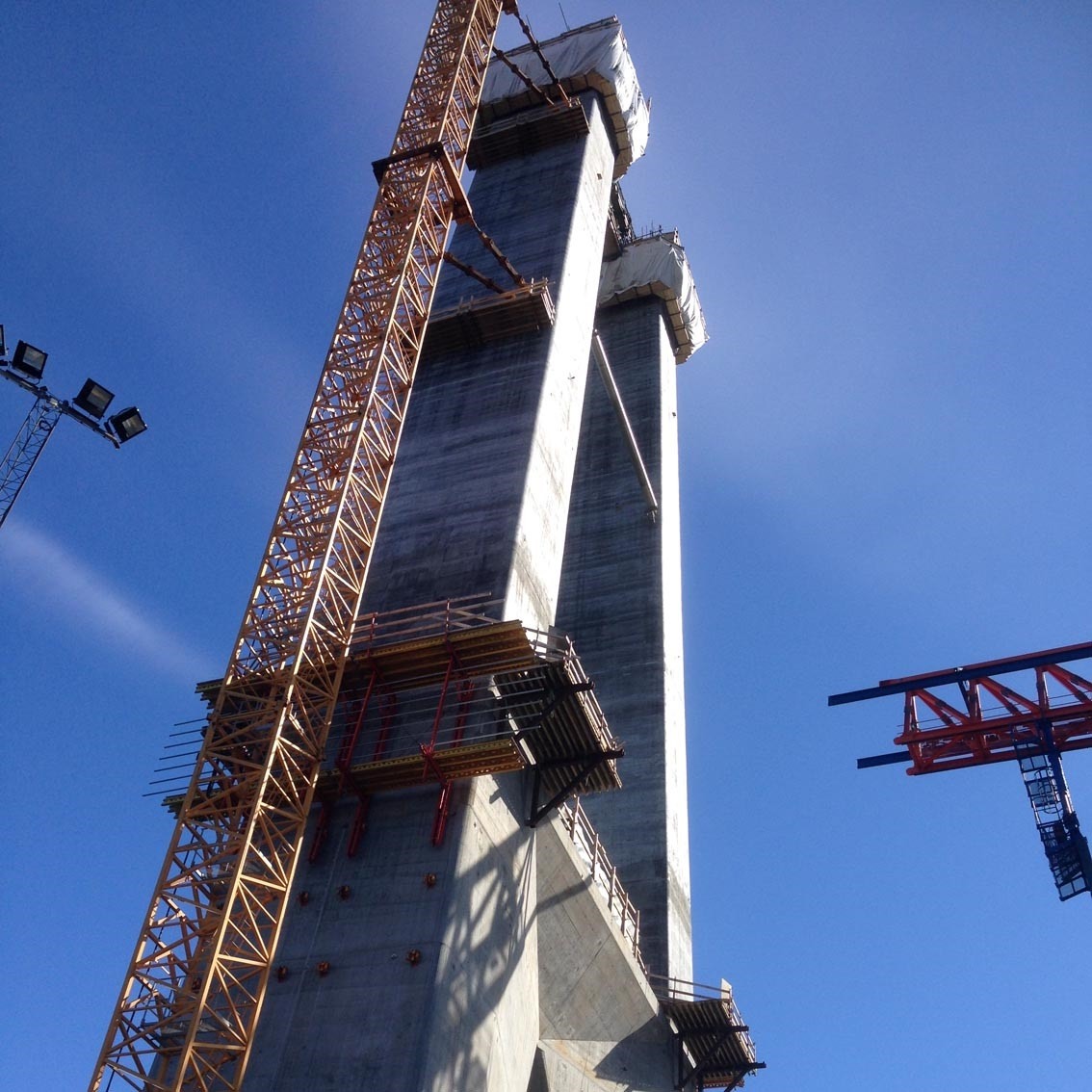 Our suspension bridge project outside Narvik, Norway, “Hålogolandsbrua” is taking shape. When completed, the lenght of the bridge will be 1533 meters and the pylons rise 170 meters above the sea level. Hålogolandsbrua will then be the second longest suspension bridge in Norway.
