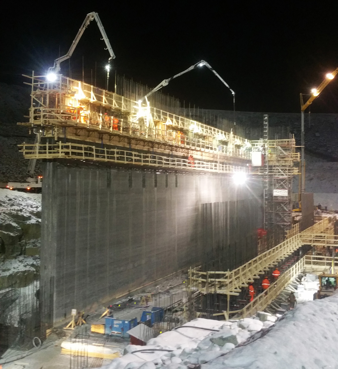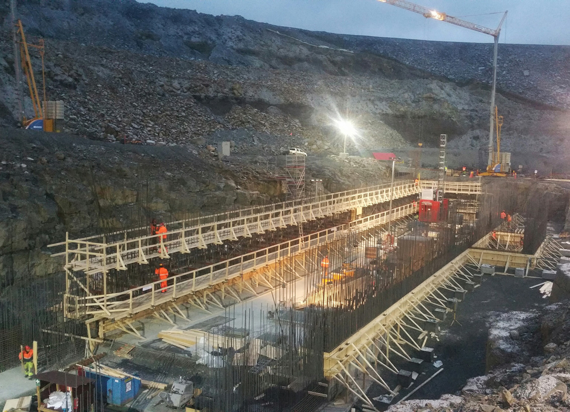 Work began 57 meters below the surface and are carried out with the help of our system for traditional slipforming.
