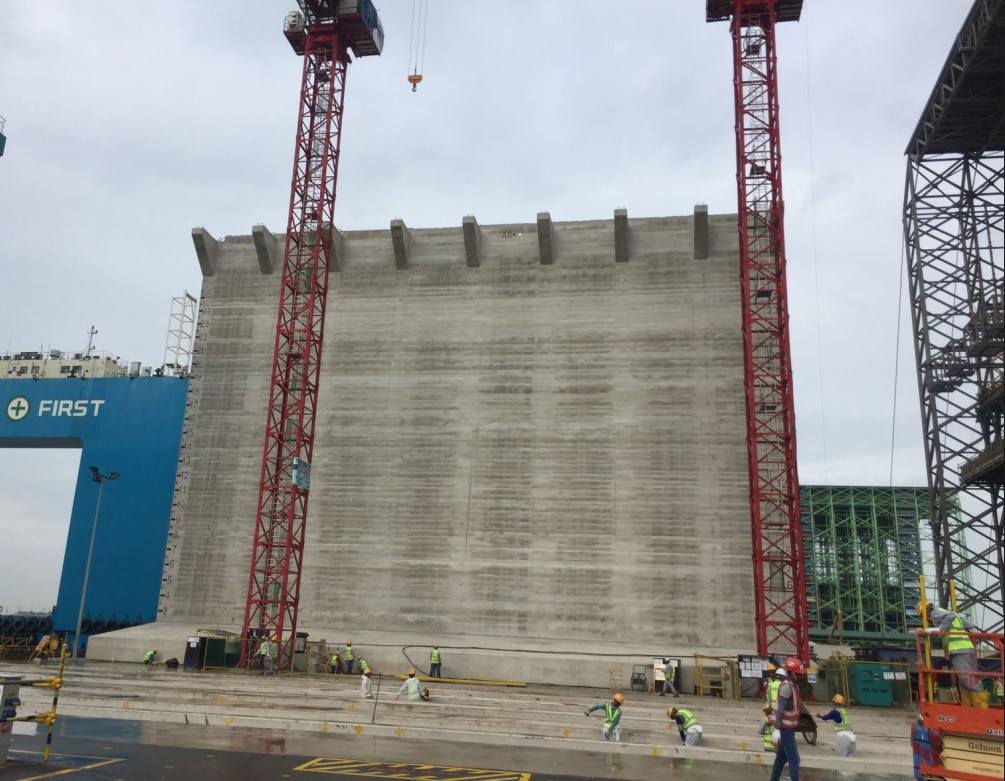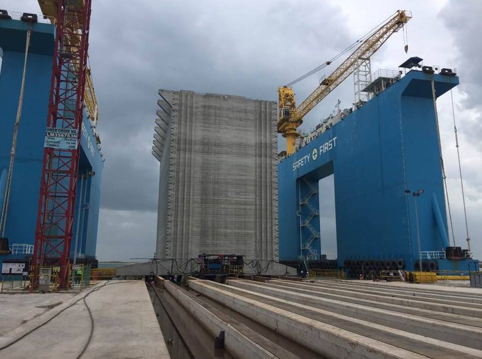 91 caissons produced, kilometers of slipformed walls and thousands and thousands of tons has been moved from on shore to off shore by our transfer equipment. Thanks to our client and all you engineers, supervisors and local operators for making this project a big success!