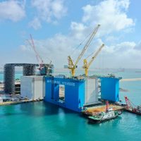 - The transfer of the completed caissons has been carried out at an average speed of approximately 17 m per hour.