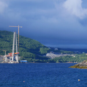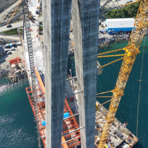 In May 2015, slipforming of the bridge pylons began, during the winter this was completed at 141 meters. The total height of the pylons is 172.7 meters, the distance between the pylons (the bridge span) is 1145 m. This makes it the second-longest bridge span in Norway. The bridge was opened to traffic December 9, 2018.