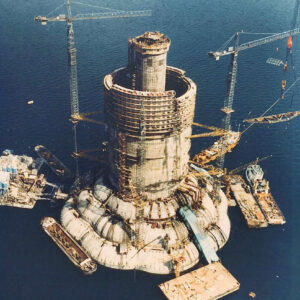 At the time, Ninian Central Oil Platform was the world’s largest gravity structure (440,000 tons). The structure is 140 m in diameter at its base, with seven concentric walls of stepped heights intersected by radial walls. The central shaft is 14 m wide and surrounded by a breakwater wall 45 m in diameter and 1.6 m thick pierced with 1.5 m diameter holes. 1950 nos of our slipform jacks were used.